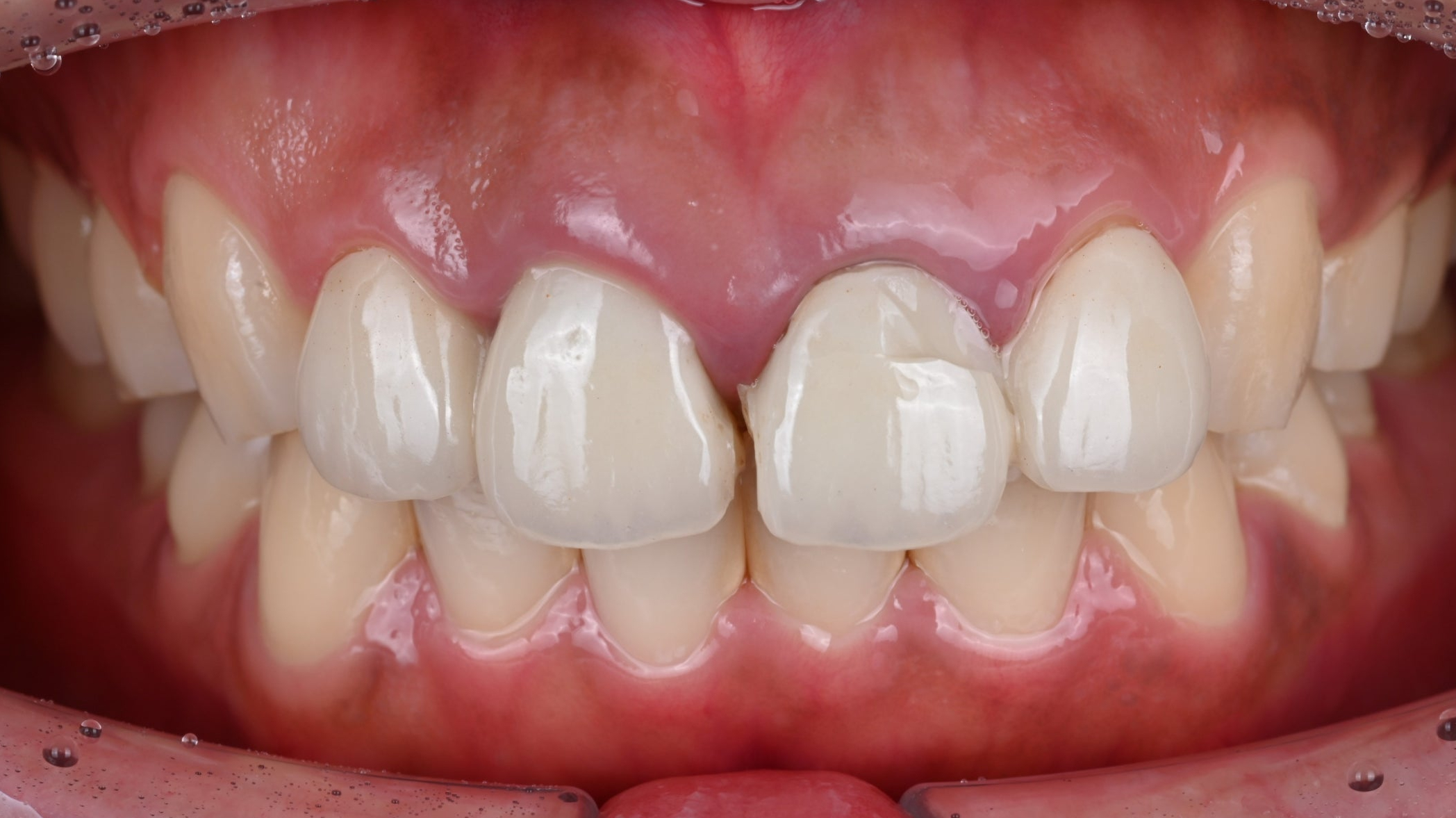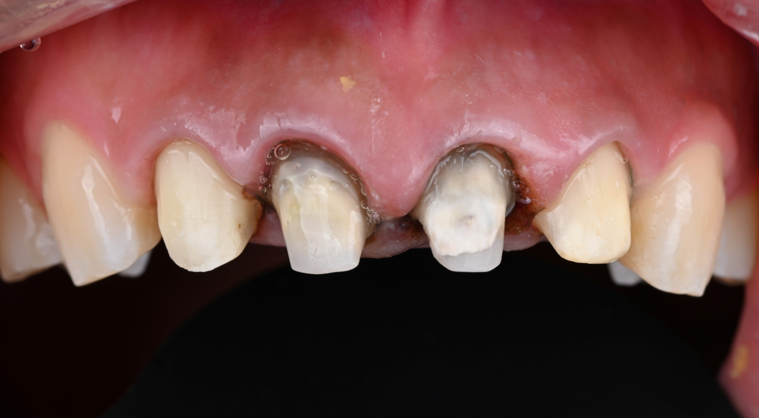 기존 보철물은 앞니 4개가 하나로 연결된 형태였는데, 세월이 흐르며 파절이 발생한 것이죠.