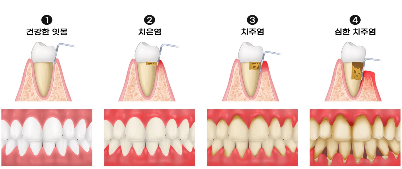 초기에는 치아 주변 잇몸에만 조금씩 염증이 생기다가