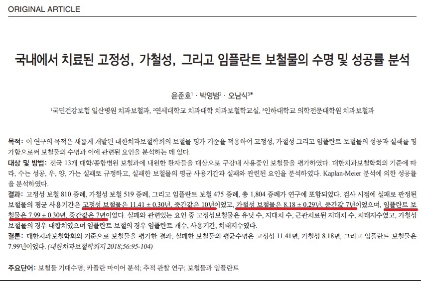 보철물 수명에 관한 논문