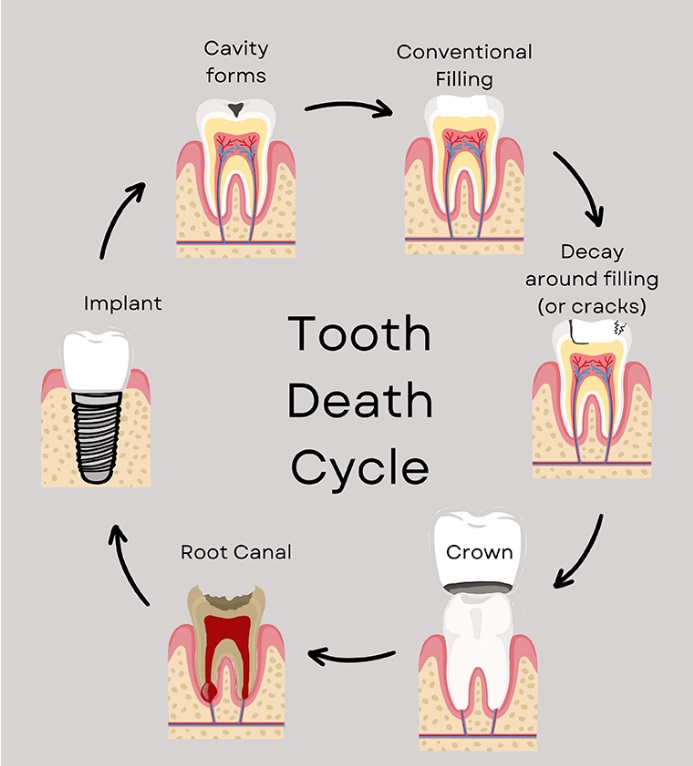 레진 -> 인레이 -> 크라운(신경치료) -> 임플란트