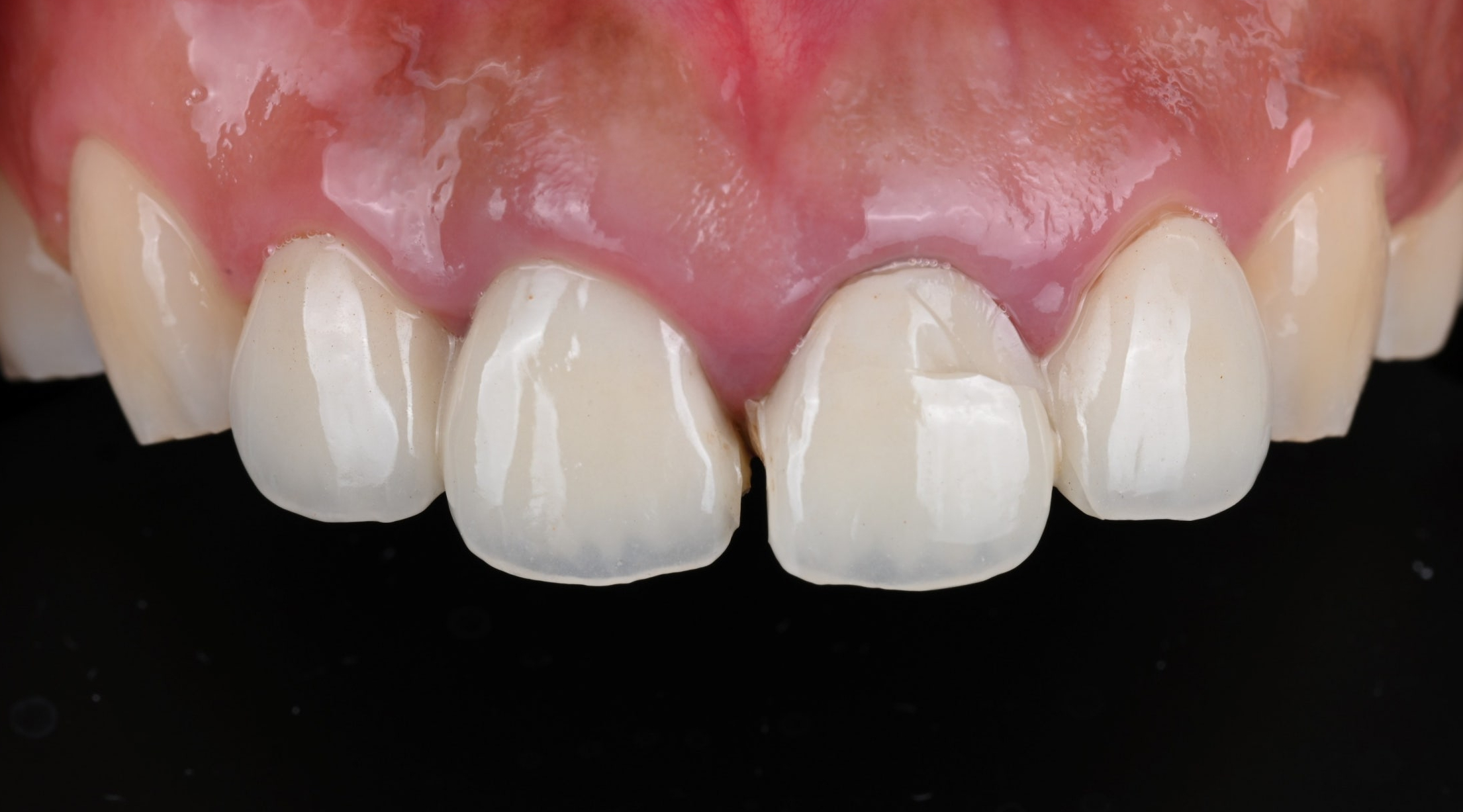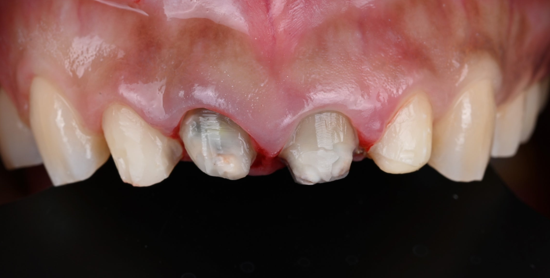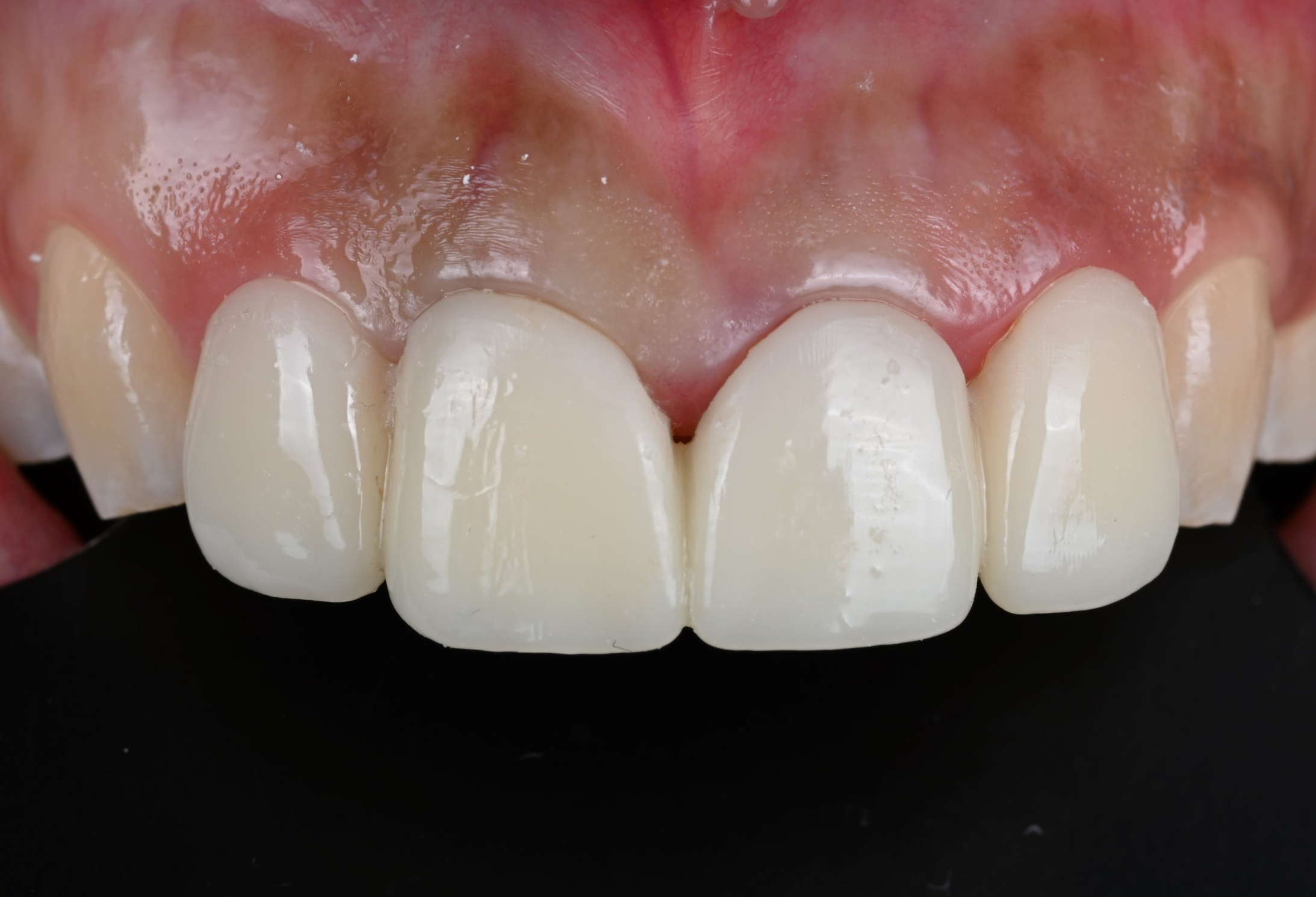 기존 보철물은 앞니 4개가 하나로 연결된 형태였는데, 세월이 흐르며 파절이 발생한 것이죠.